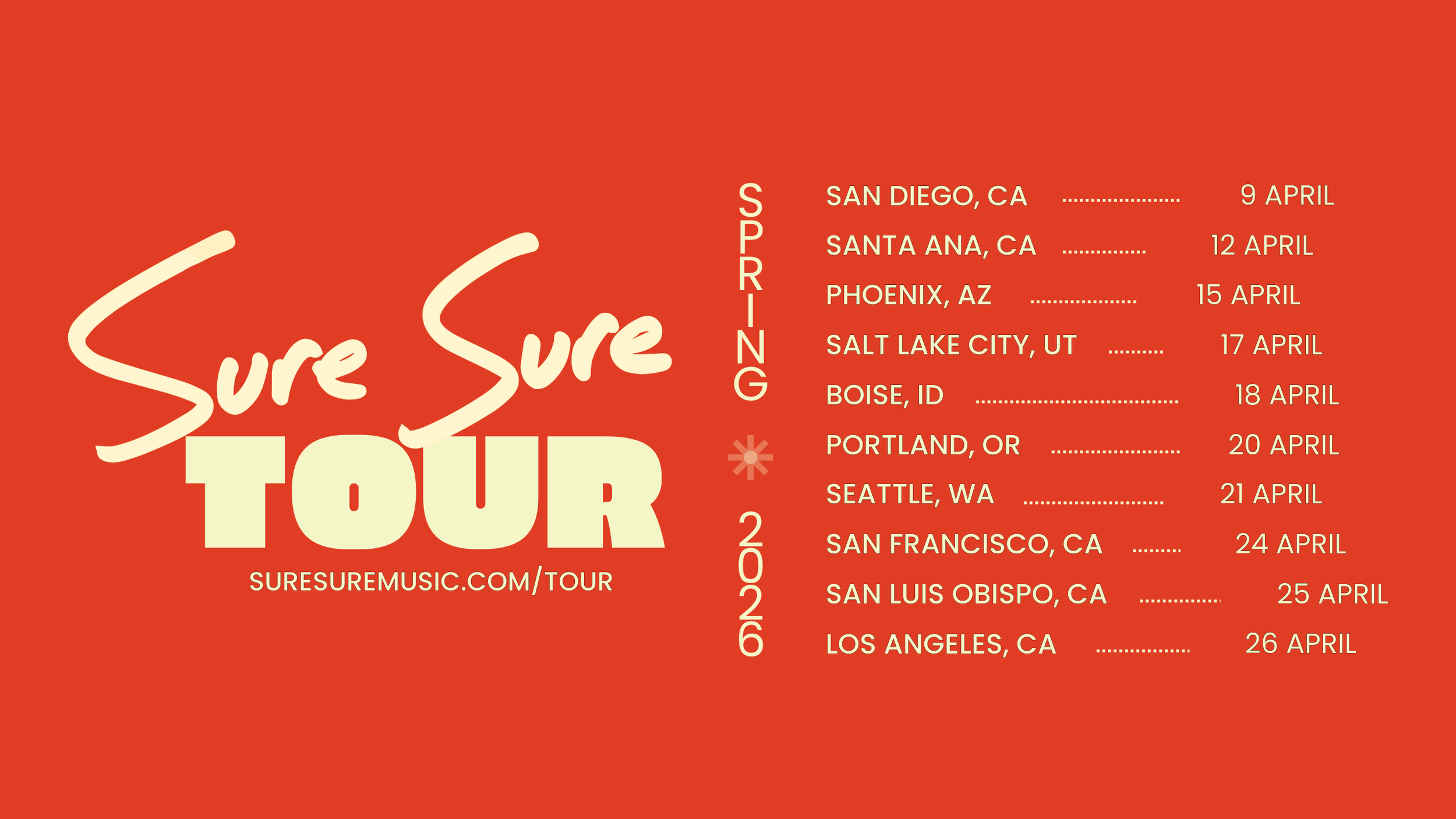 Sure Sure is an indie band and home recording project that has broadcast their bespoke brand of pop music from the east side of Los Angeles since 2014. Led by singer/songwriter Chris Beachy, Sure Sure has amassed over 200M streams and garnered praise for their songwriting and production skills. The band has played multiple headline tours of North America, as well as shared the stage with artists such as Young The Giant, Hippo Campus, Mk.Gee, and Bon Iver.